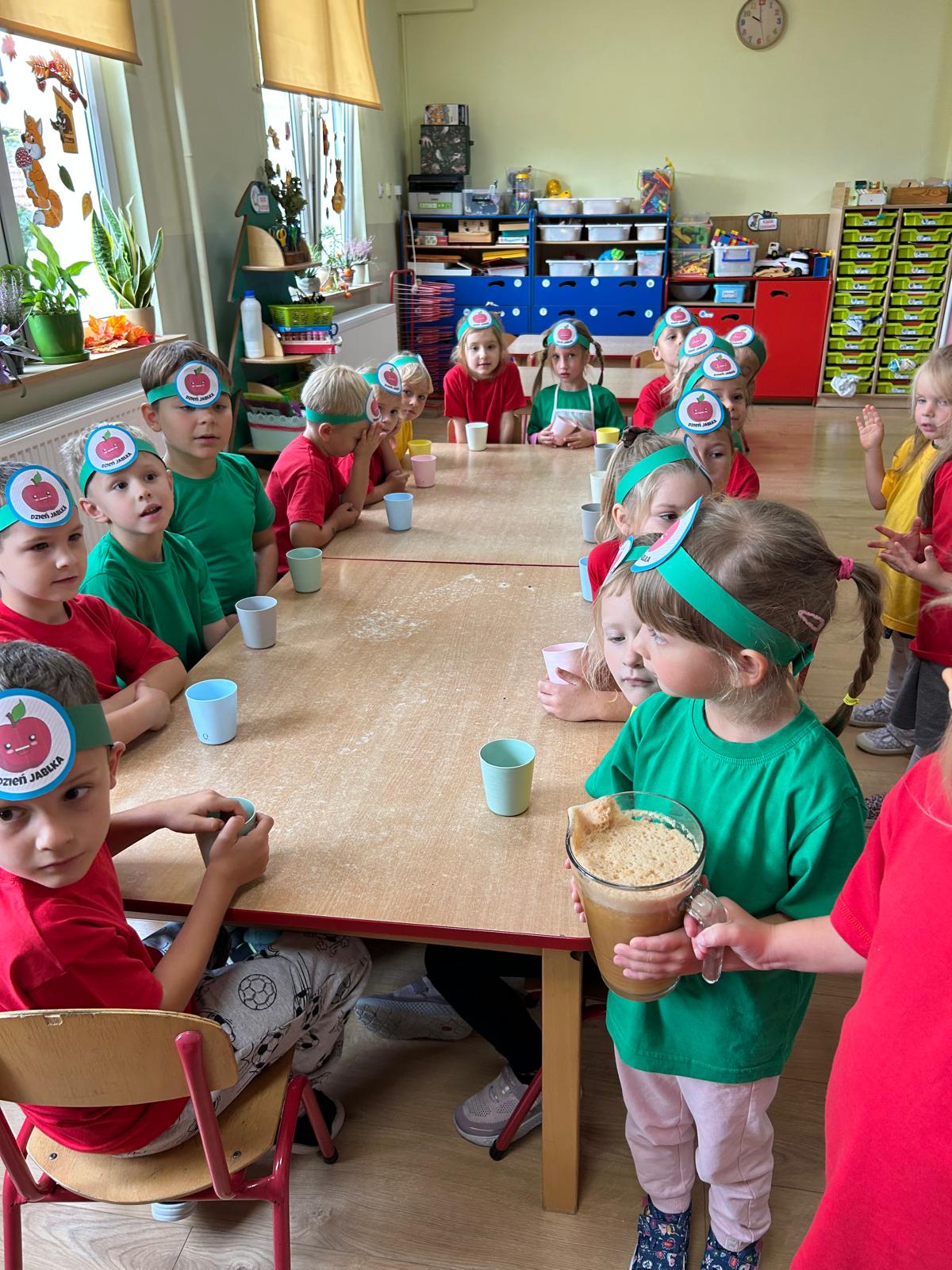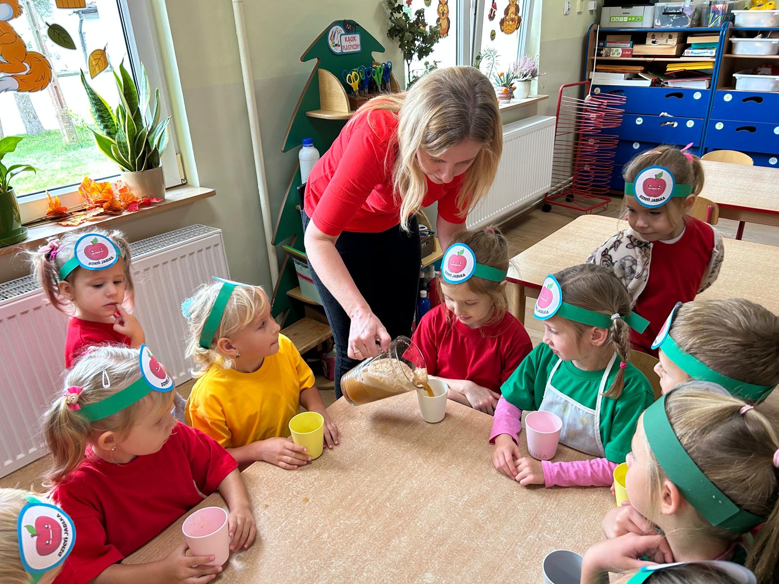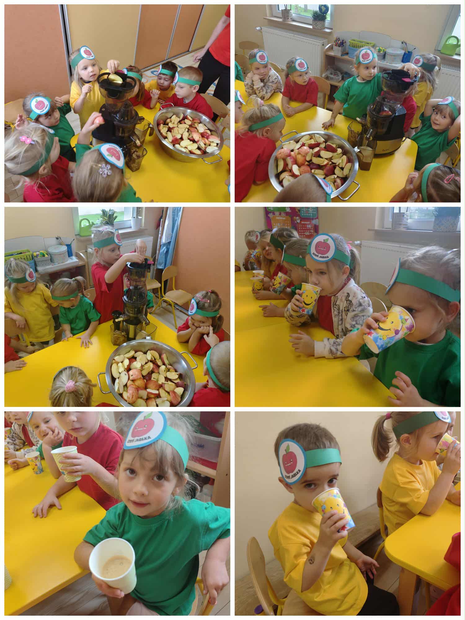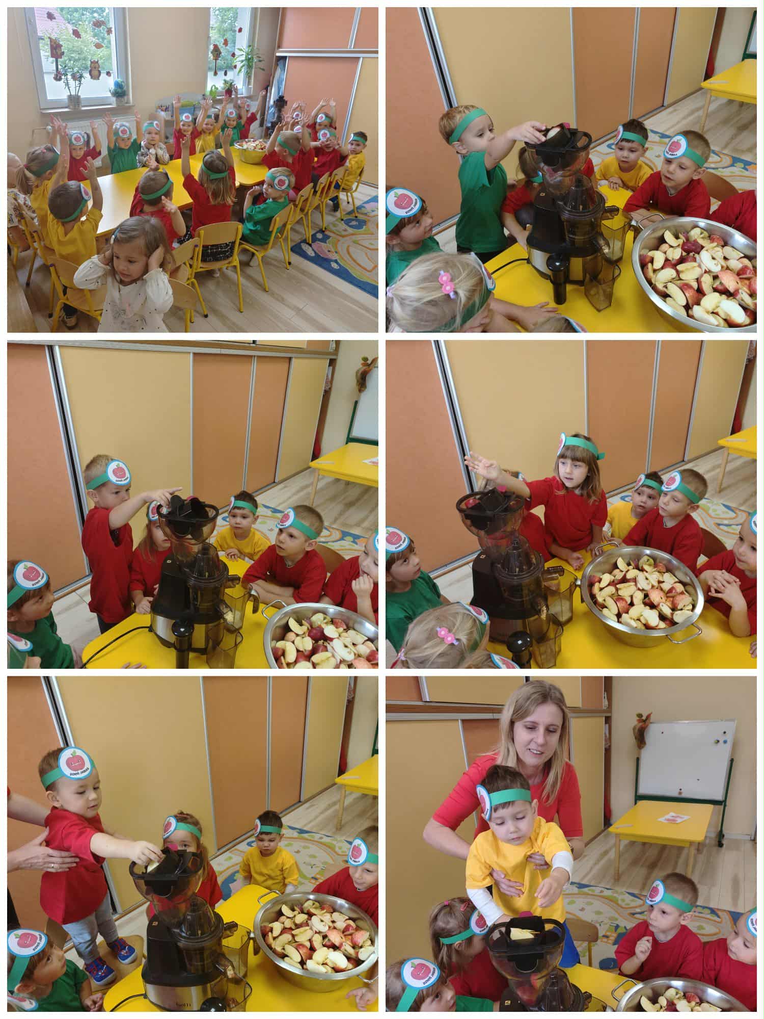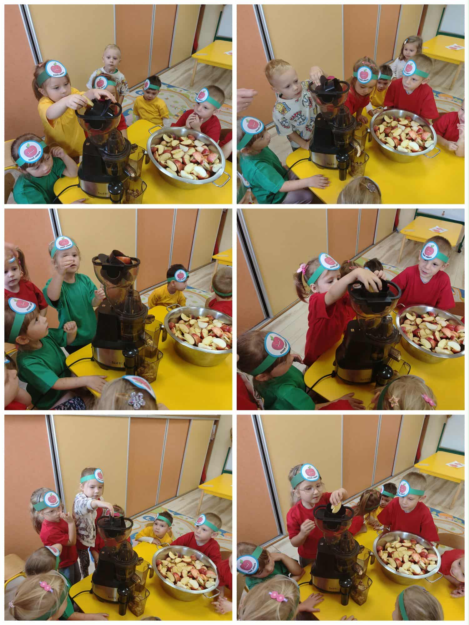 Grupa Myszki zamieniła się w małych sokowirówkowców i wspólnie przygotowywała świeży sok jabłkowy. Dzieci uczyły się jak myć, kroić i wyciskać jabłka, a na końcu z dumą próbowały swojego zdrowego napoju.