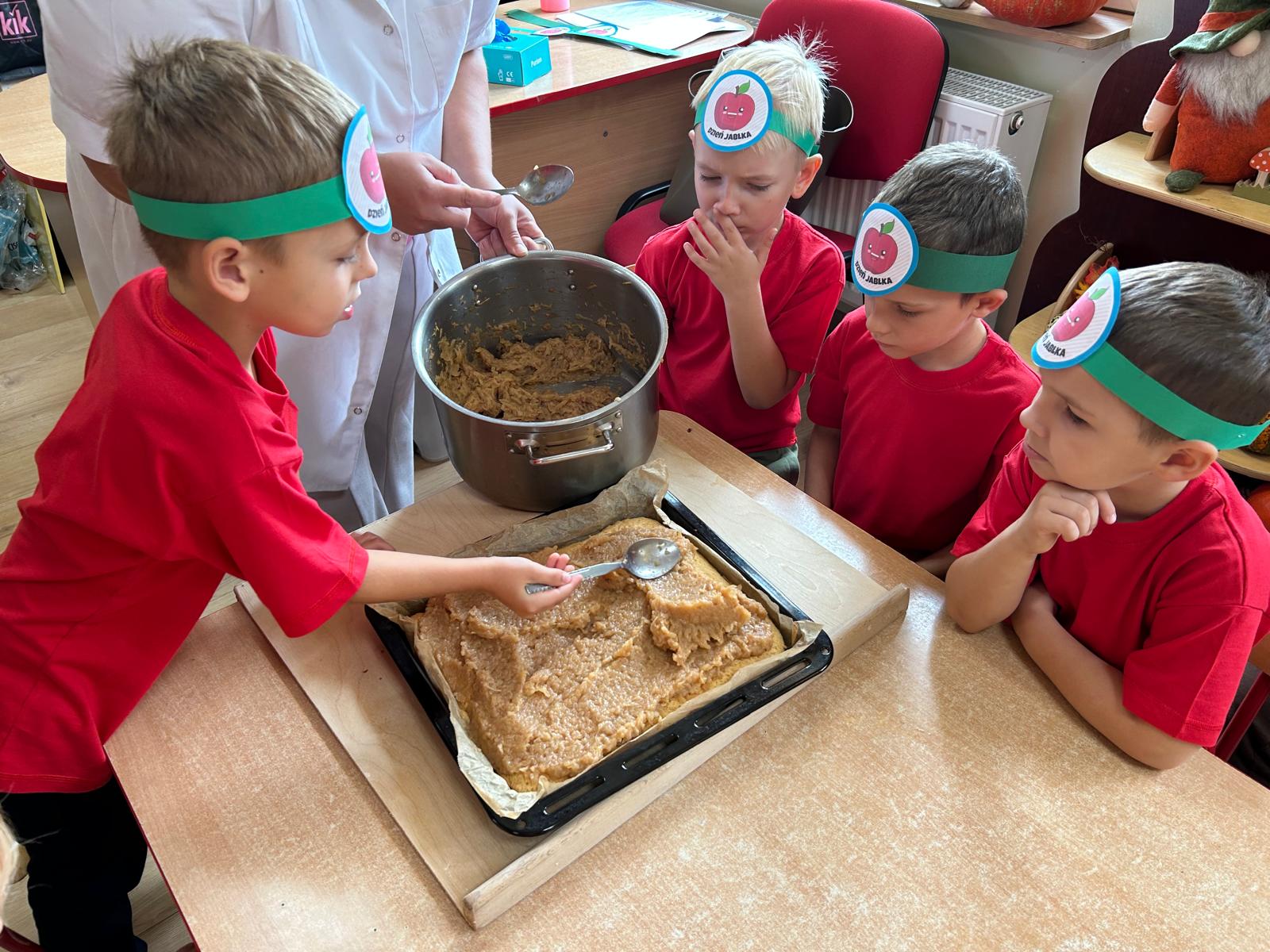 Oprócz wspólnego gotowania, dzieci uczestniczyły w zabawach i konkursach związanych z jabłkami.