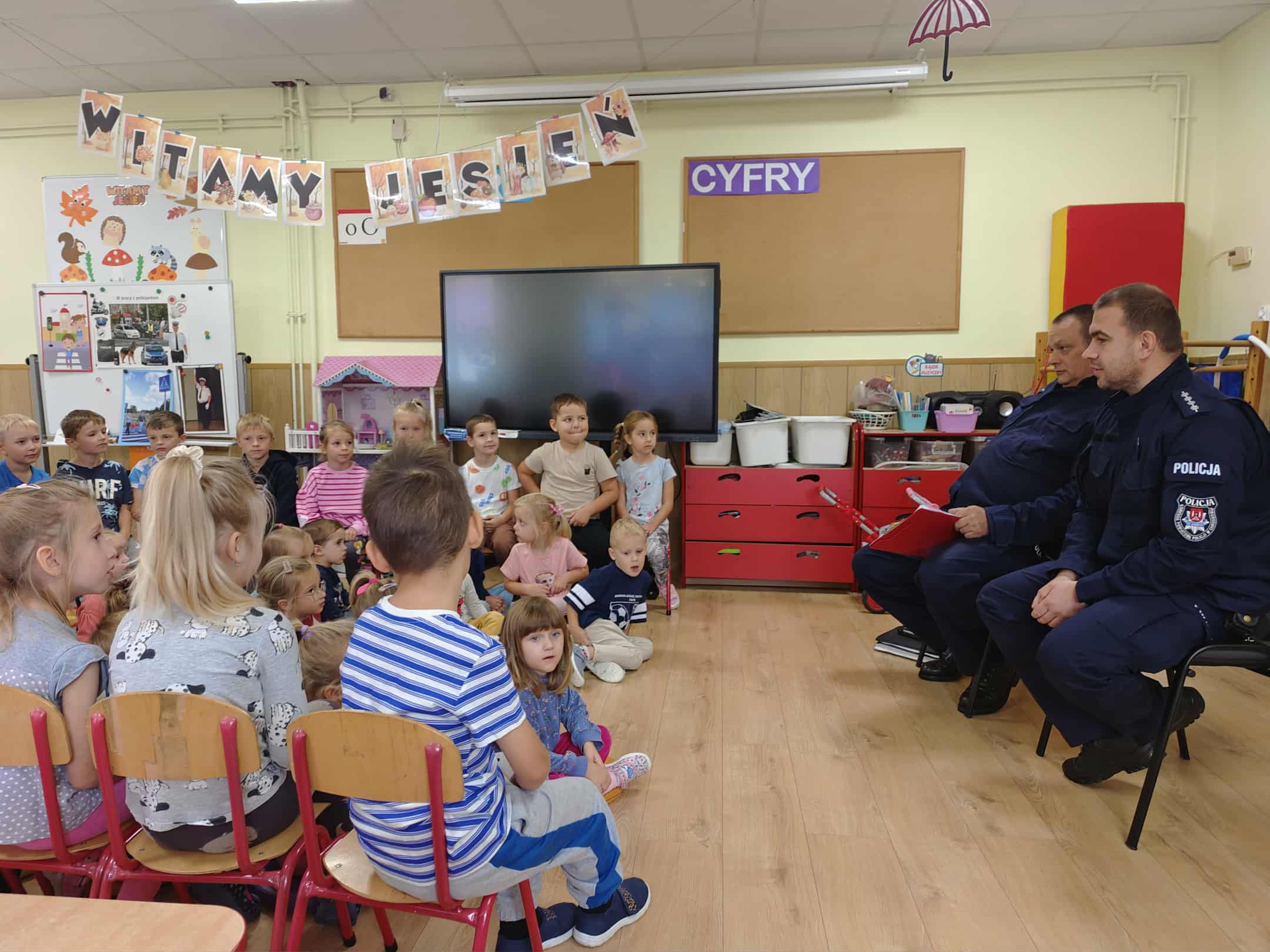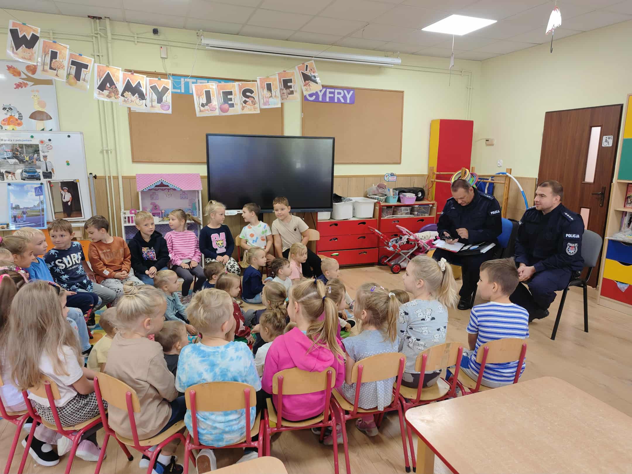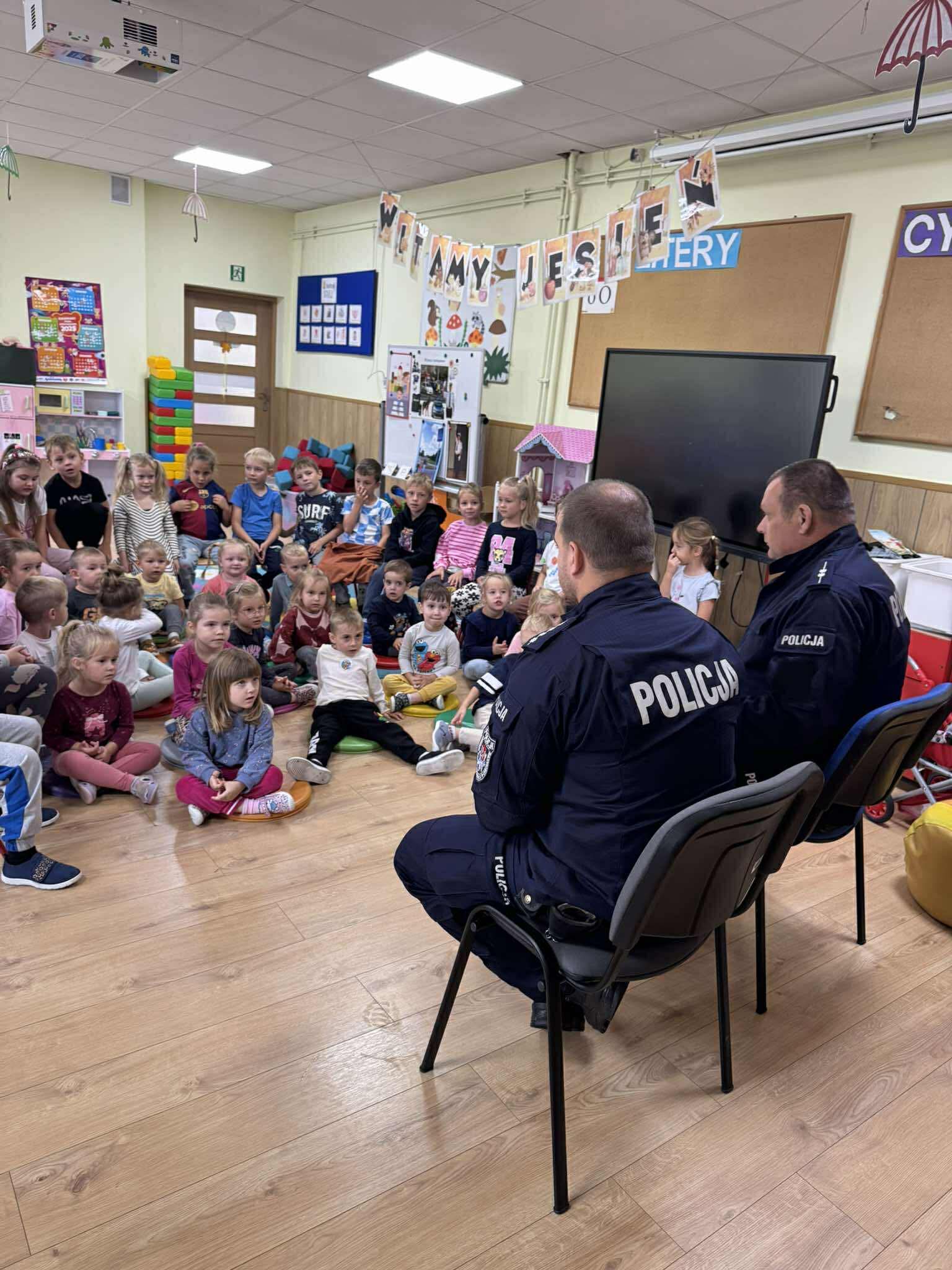 W tym tygodniu nasze przedszkole odwiedzili wyjątkowi goście – funkcjonariusze Policji. Spotkanie było dla dzieci ogromnym przeżyciem i ciekawą lekcją bezpieczeństwa.