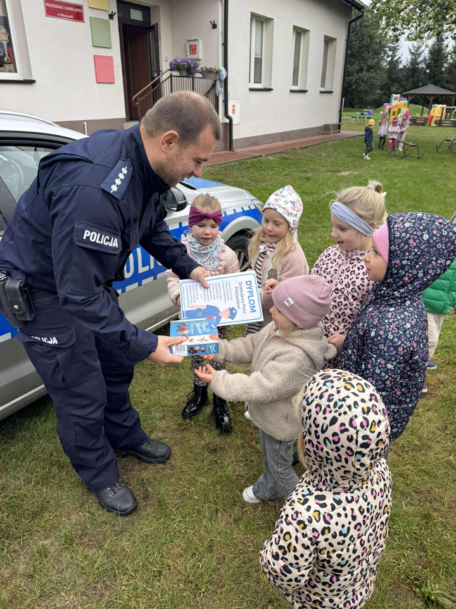 Największą atrakcją była możliwość obejrzenia radiowozu policyjnego i wyposażenia, którego policjanci używają w codziennej służbie. Przedszkolaki mogły wejść do środka samochodu i posłuchać sygnałów świetlnych oraz dźwiękowych.