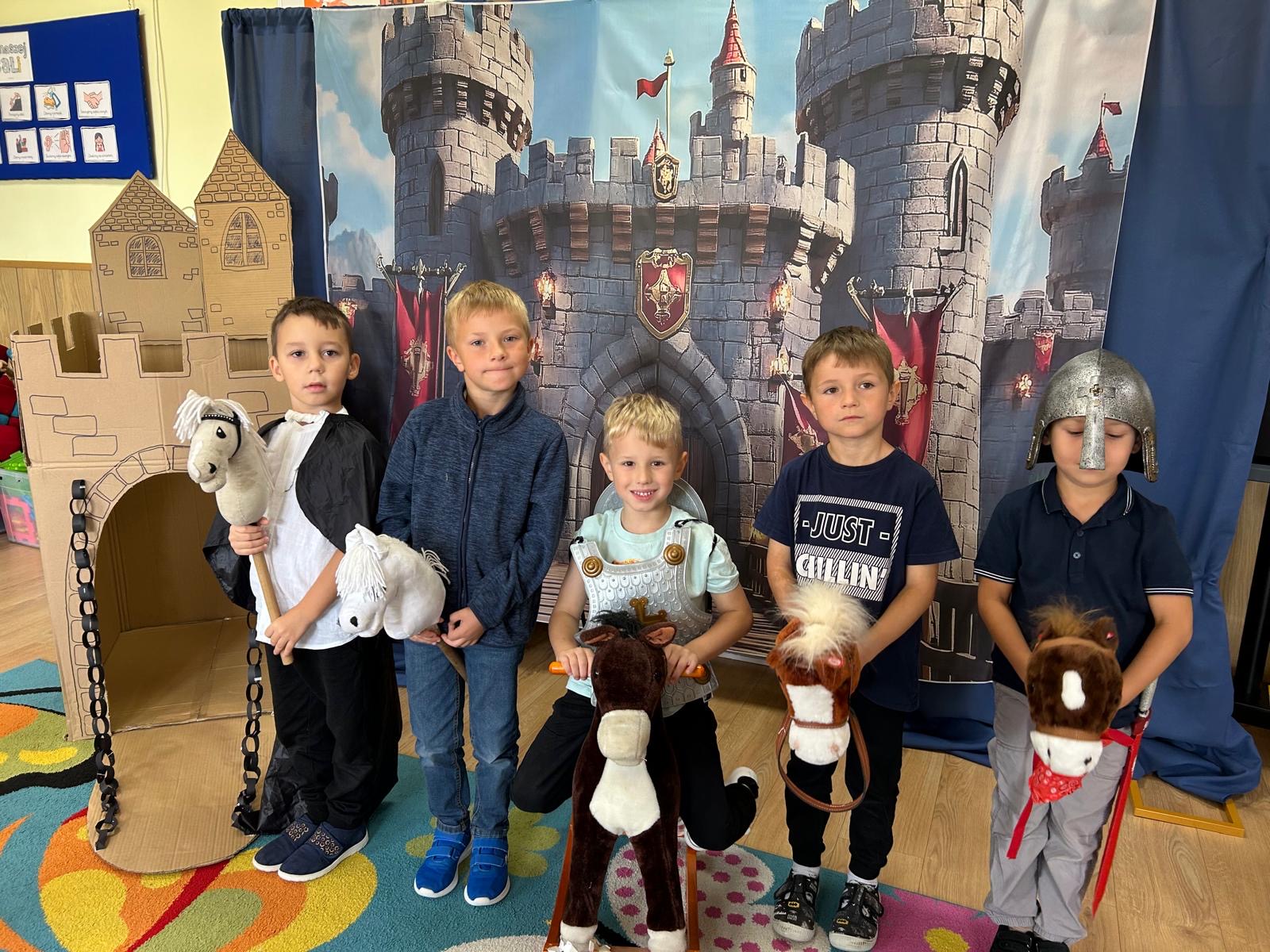 Tegoroczny Dzień Chłopaka był wyjątkowy – przenieśliśmy się w czasie do średniowiecznego zamku! Tego dnia nasze przedszkole opanowali dzielni rycerze. Dzieci wzięły udział w wesołych konkurencjach rycerskich, w których mogły sprawdzić swoją zręczność, odwagę i spryt. Nie zabrakło też wspólnych zabaw, śmiechu i pamiątkowych zdjęć.