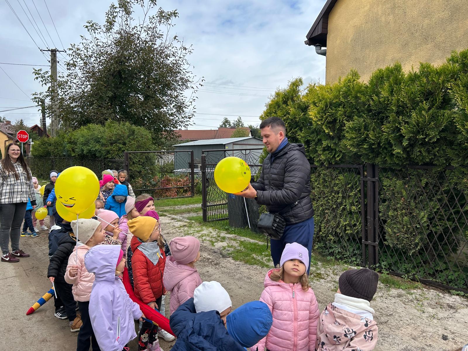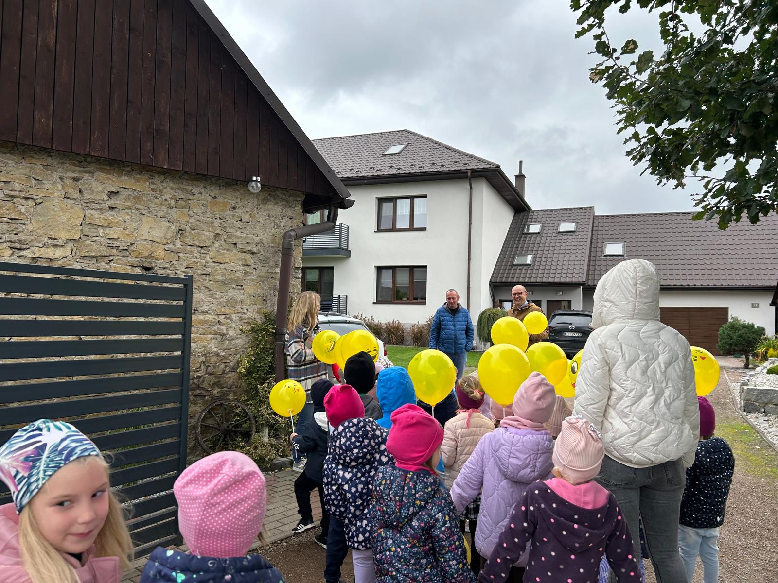 Już od rana w salach rozbrzmiewał śmiech i muzyka. Dzieci uczestniczyły w wielu radosnych zabawach i konkurencjach, których motywem przewodnim był oczywiście uśmiech i dobra zabawa. Po wspólnej zabawie dzieci wyruszyły na radosny spacer po okolicy, rozdając mieszkańcom balony z uśmiechami. Każdy, kto spotkał nasze przedszkolaki, mógł poczuć, jak niewiele potrzeba, by na twarzy pojawił się uśmiech. 💛 Dzień Uśmiechu przypomniał nam wszystkim, że warto dzielić się radością – bo uśmiech nic nie kosztuje, a potrafi zdziałać cuda! 🌞