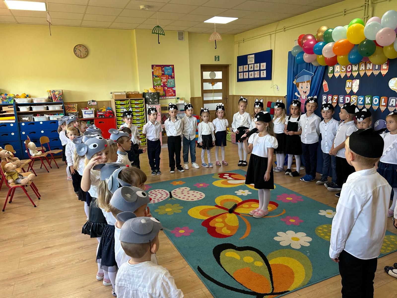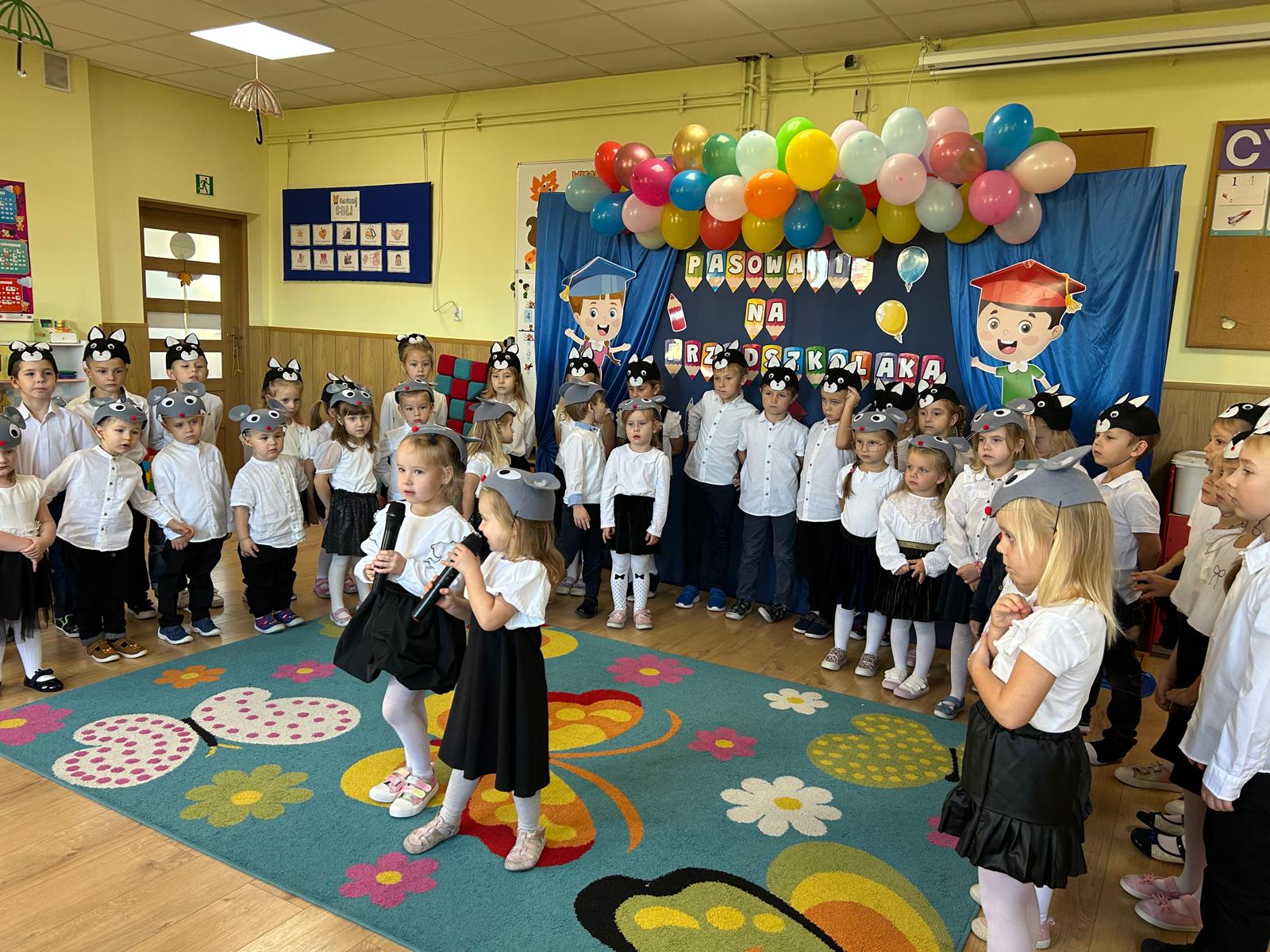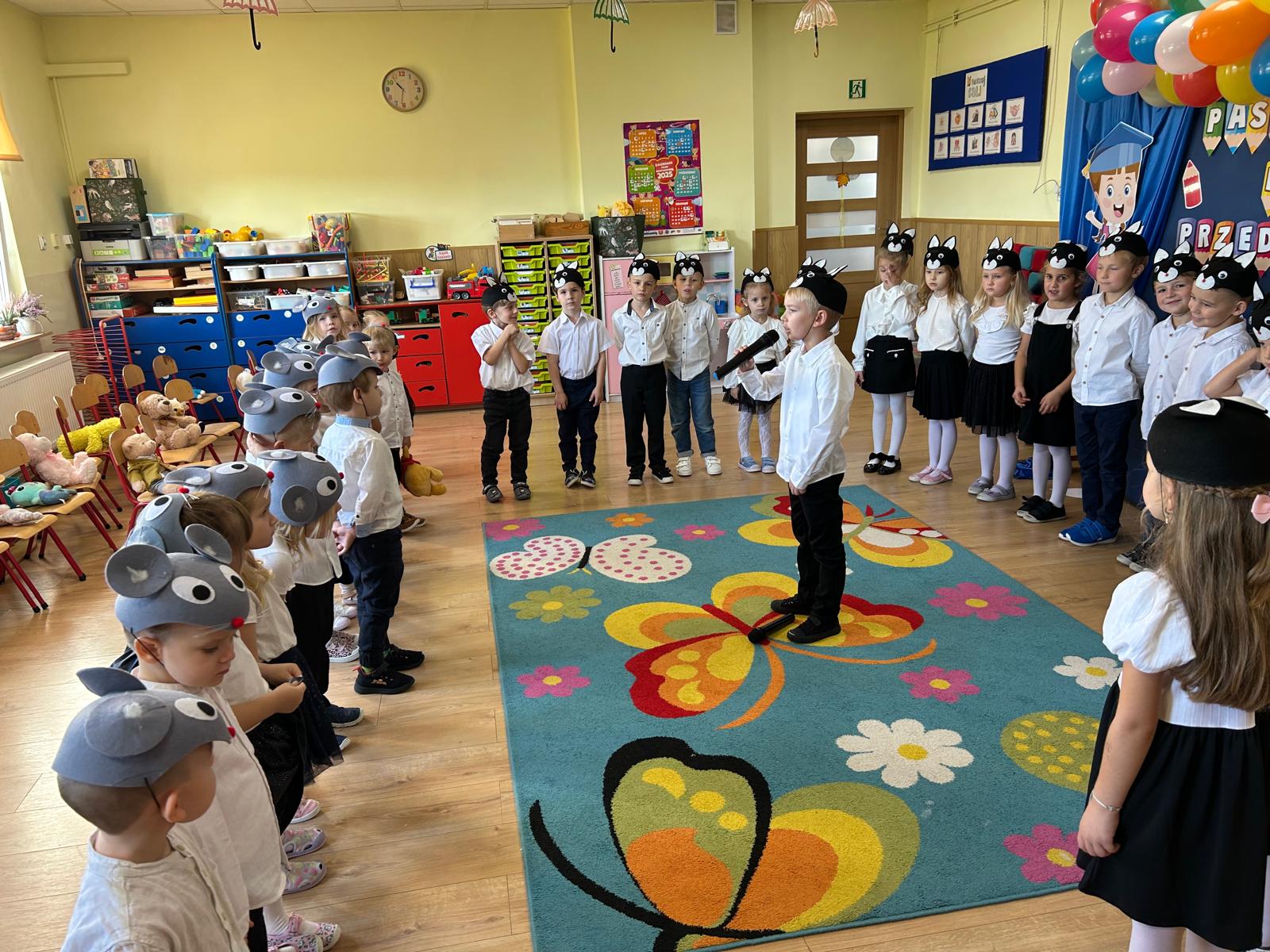 Dzieci pięknie śpiewały, recytowały wierszyki i tańczyły. Najmłodsi zostali oficjalnie przyjęci do grona przedszkolaków, a starszaki z dumą potwierdziły swoją gotowość do nowych wyzwań. Na zakończenie każde dziecko otrzymało pamiątkowy medal i słodką czekoladkę.