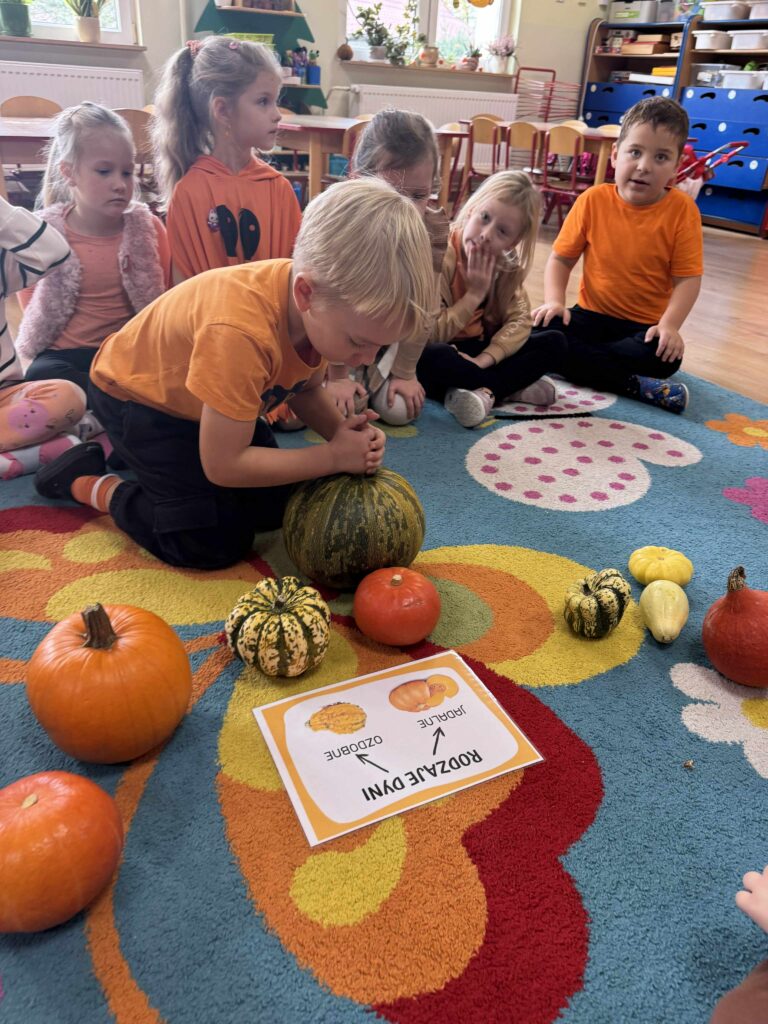 W naszym przedszkolu zrobiło się pomarańczowo i wesoło! Obchodziliśmy Dzień Dyni – pełen zabaw, konkursów i kreatywnych prac plastycznych. Dzieci poznawały różne odmiany dyni, tworzyły dyniowe ozdoby i brały udział w wesołych konkurencjach. Dzieci przekonały się, że dynia to nie tylko warzywo, ale też wspaniały temat do zabawy i nauki.
