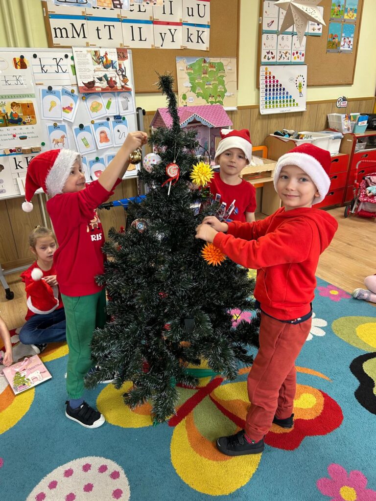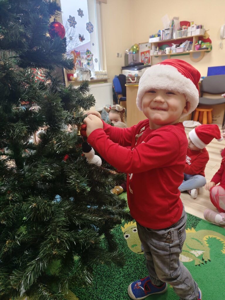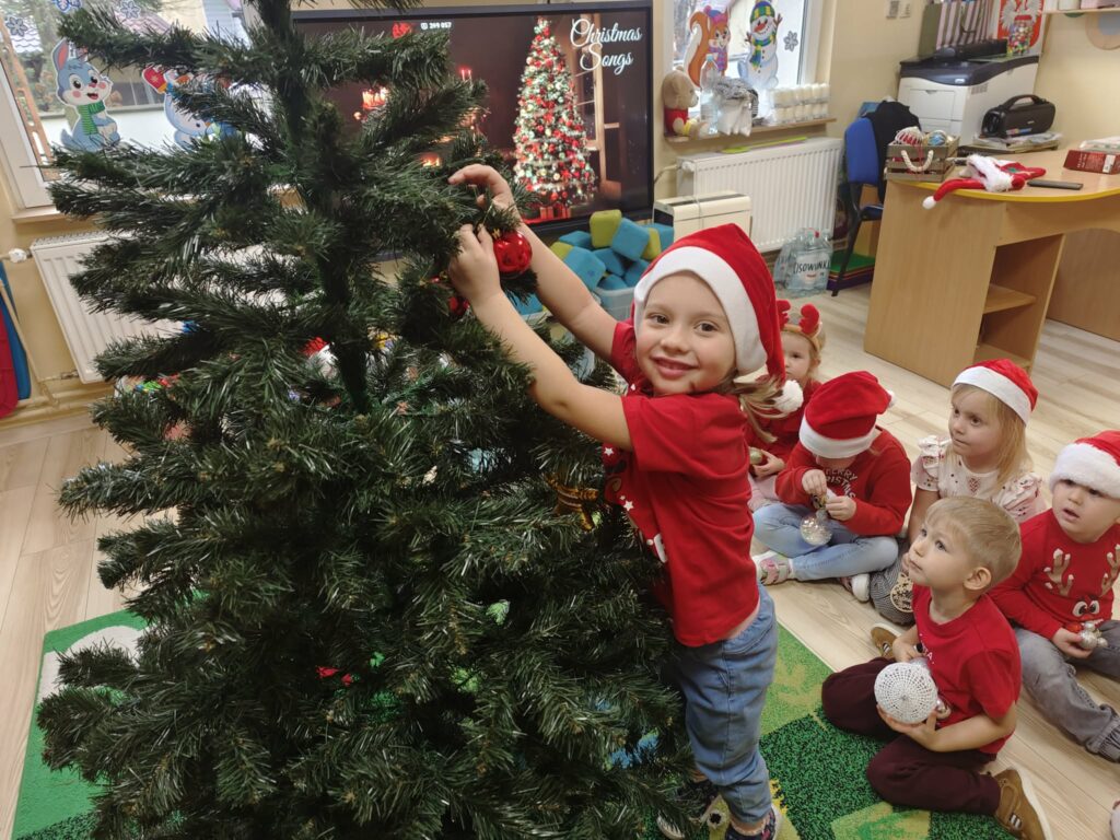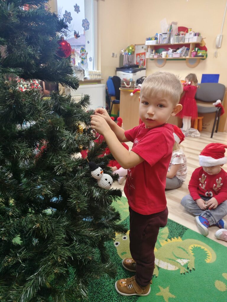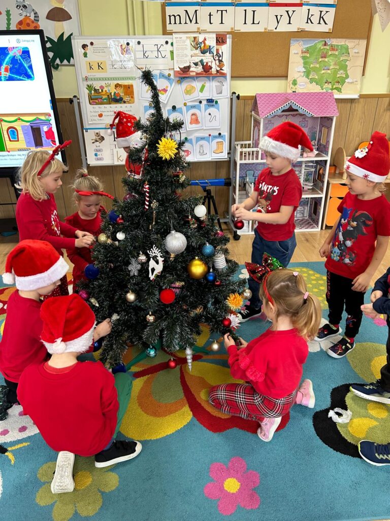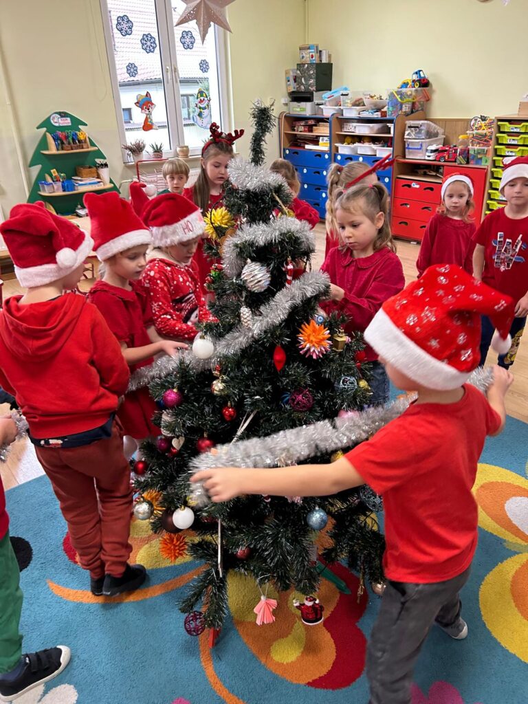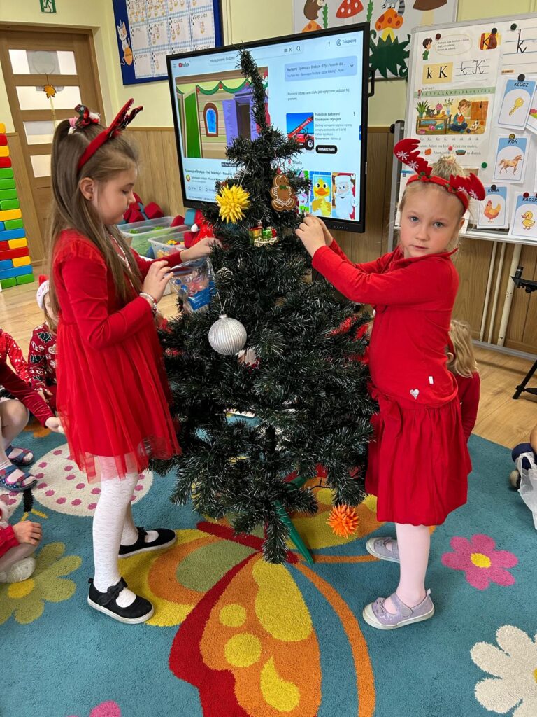 5 grudnia w naszym przedszkolu panowała wyjątkowo radosna, świąteczna atmosfera. Dzieci z wielkim zaangażowaniem i uśmiechem na twarzach przystąpiły do ubierania choinek, które wspólnie ozdabiały kolorowymi bombkami, łańcuchami i własnoręcznie wykonanymi dekoracjami.