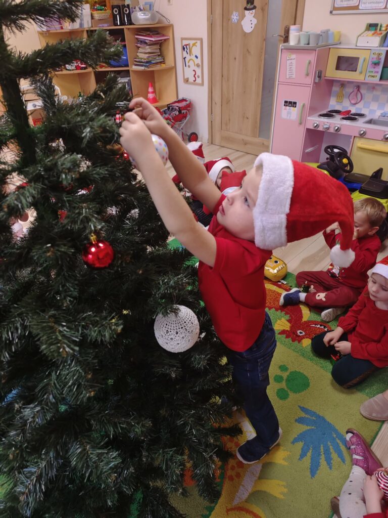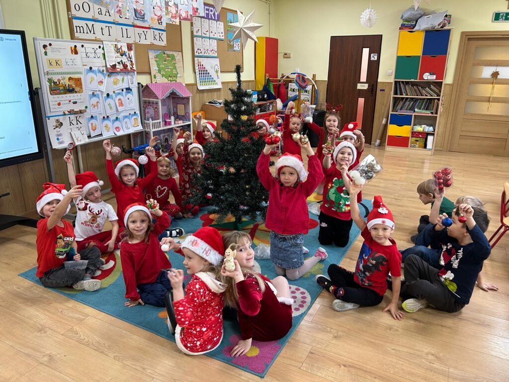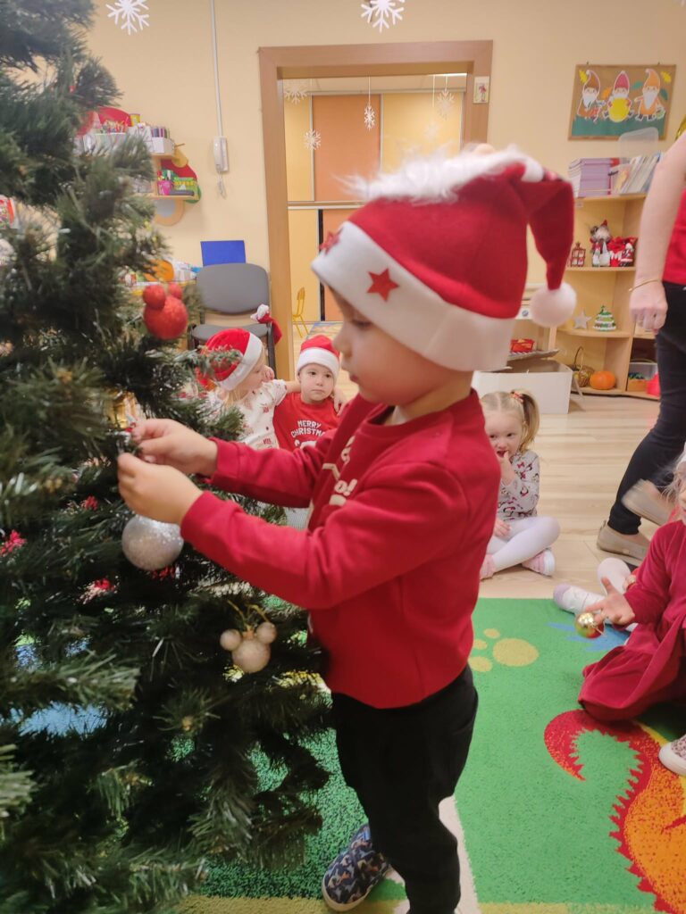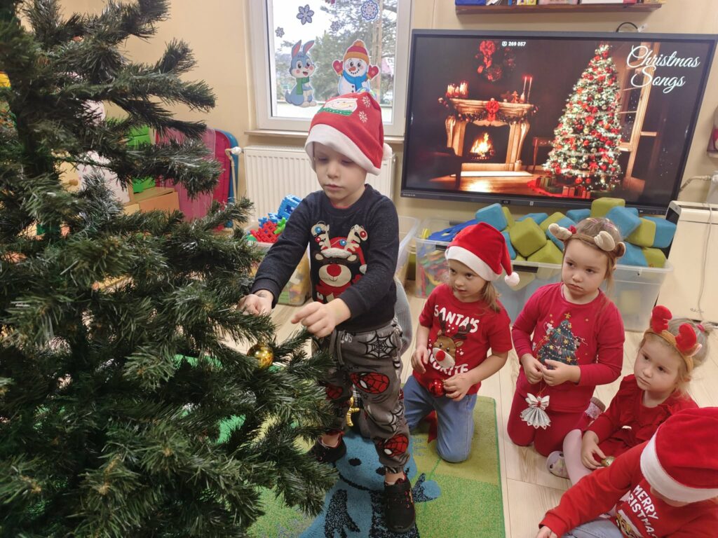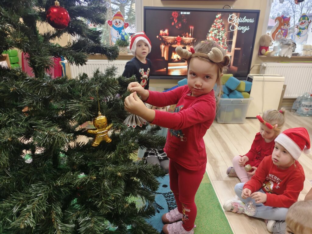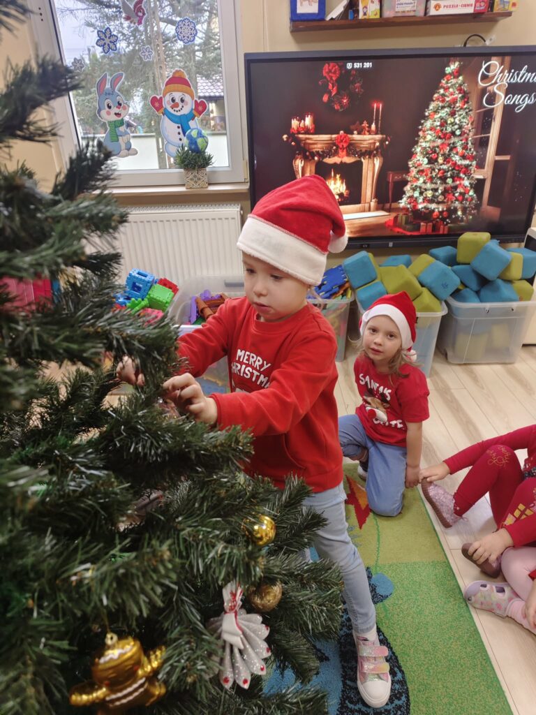 5 grudnia w naszym przedszkolu panowała wyjątkowo radosna, świąteczna atmosfera. Dzieci z wielkim zaangażowaniem i uśmiechem na twarzach przystąpiły do ubierania choinek, które wspólnie ozdabiały kolorowymi bombkami, łańcuchami i własnoręcznie wykonanymi dekoracjami.