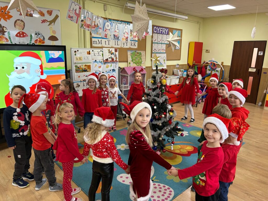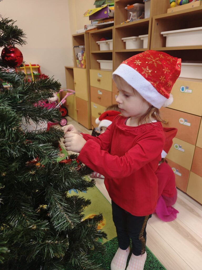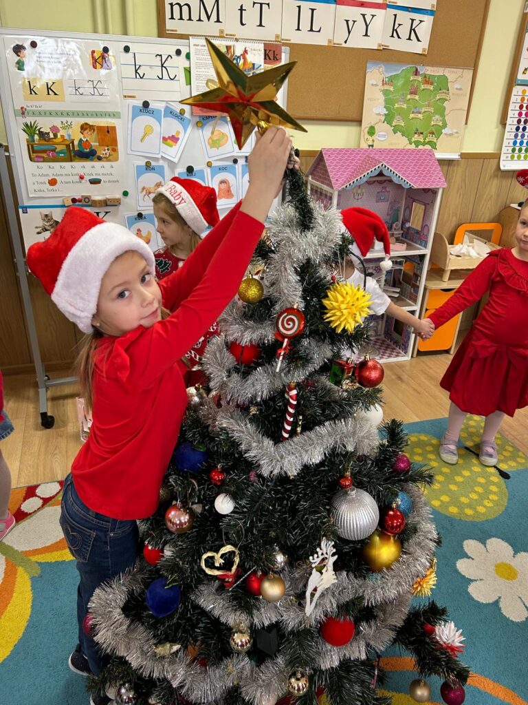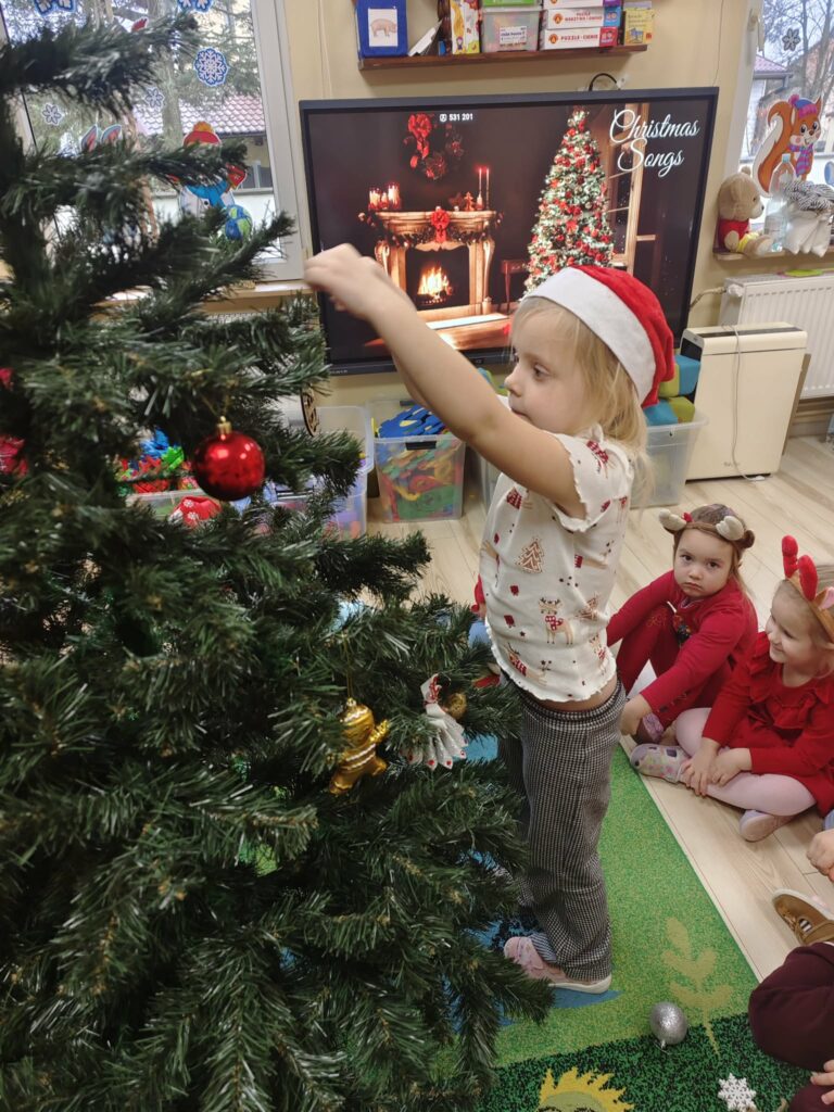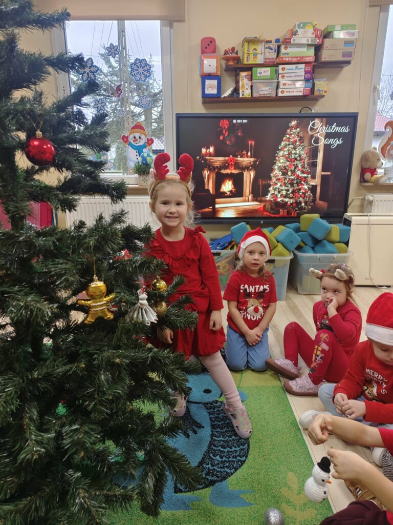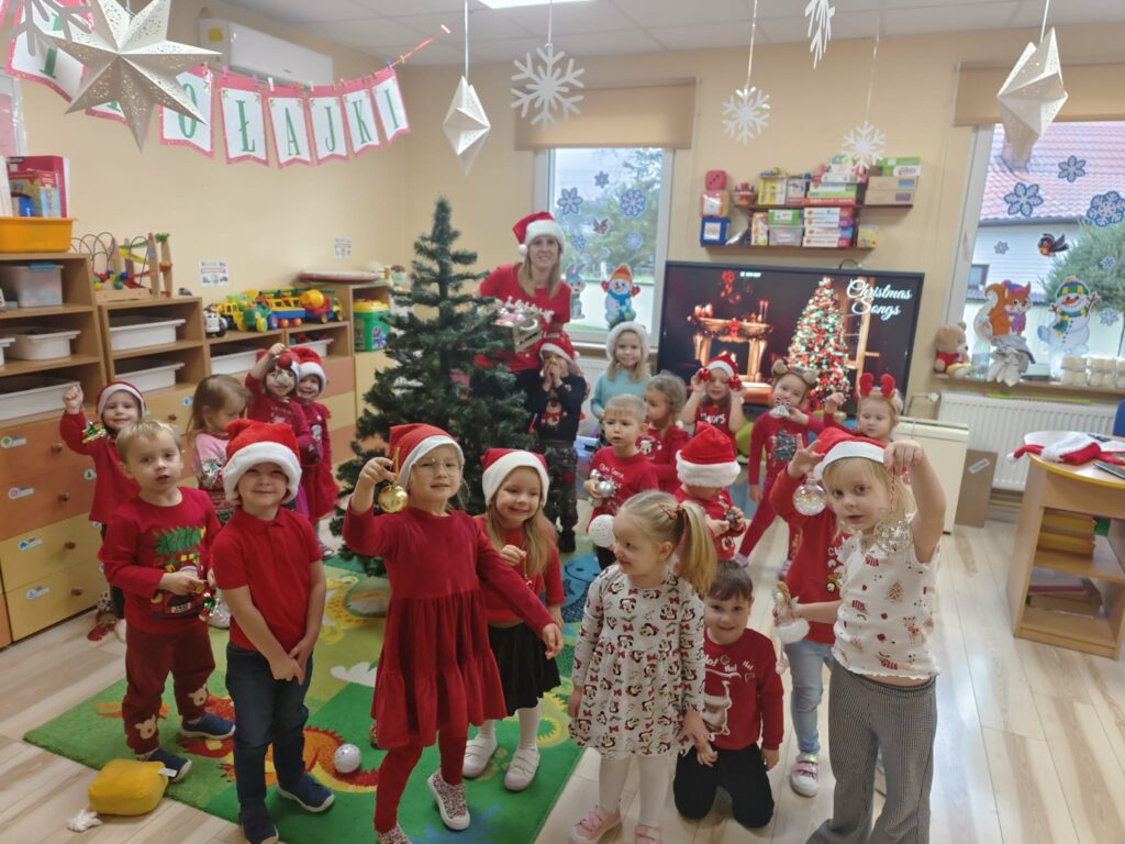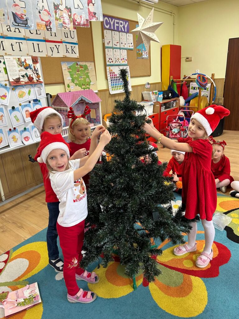 5 grudnia w naszym przedszkolu panowała wyjątkowo radosna, świąteczna atmosfera. Dzieci z wielkim zaangażowaniem i uśmiechem na twarzach przystąpiły do ubierania choinek, które wspólnie ozdabiały kolorowymi bombkami, łańcuchami i własnoręcznie wykonanymi dekoracjami.