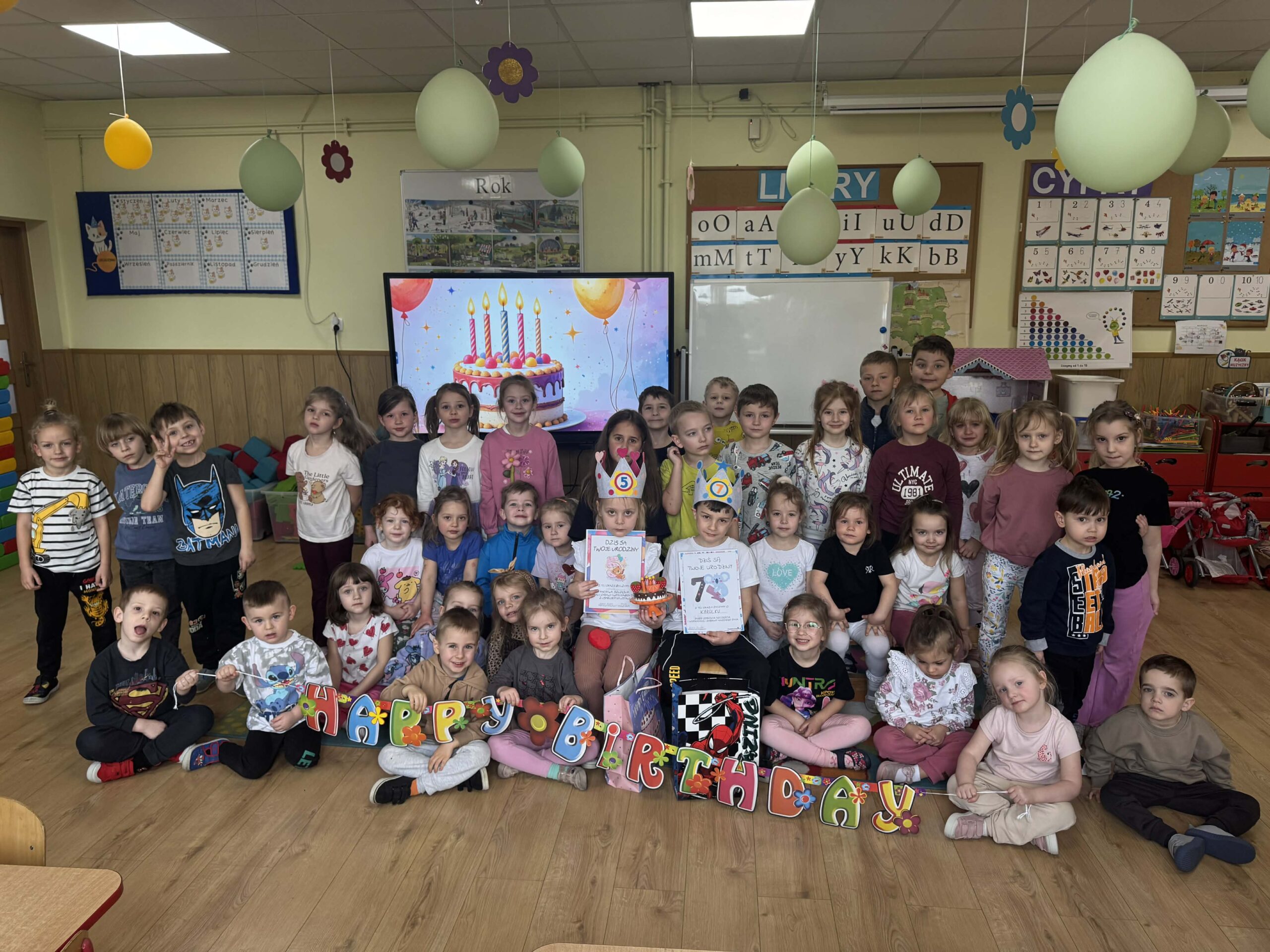 Był to radosny czas pełen uśmiechów, wspólnych zabaw i serdecznych życzeń od koleżanek, kolegów oraz pań. Nie zabrakło także uroczystego „Sto lat!” i słodkiego poczęstunku. 🎈